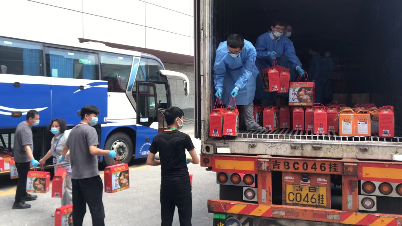 本輪疫情一開始,我們就啟動(dòng)了生活物資和抗疫物資的儲備。但在3月27日那個(gè)夜晚,當(dāng)數(shù)千人星夜趕回公司時(shí),依然有部分員工的休息條件異常艱苦。在后勤團(tuán)隊(duì)的努力下,這一情況很快得到了改善,睡袋、行軍床、氣墊床、折疊床等寢具不斷升級換代,還有部分員工住進(jìn)了創(chuàng)新園宿舍和康橋基地宿舍。食品的供應(yīng)也越來越豐富,青團(tuán)、粽子等美食沒有缺席傳統(tǒng)節(jié)日,西瓜、荔枝等時(shí)令水果如約而至,韭菜盒子、康橋小龍蝦等則成為了大家心心念念的網(wǎng)紅美食。供應(yīng)商、客戶和合作伙伴也紛紛送上了蔬菜、日用品、抗疫物資和藥物。集團(tuán)各級工會(huì)為大家提供了零食、衣物和日用品,還為駐廠員工的家屬、居家員工安排了蔬菜禮包。隊(duì)伍龐大的志愿者在物資搬運(yùn)、分發(fā)等工作中發(fā)揮了重要作用,特別是上百名TONY老師,為駐守員工完美解決了“頭等大事”!