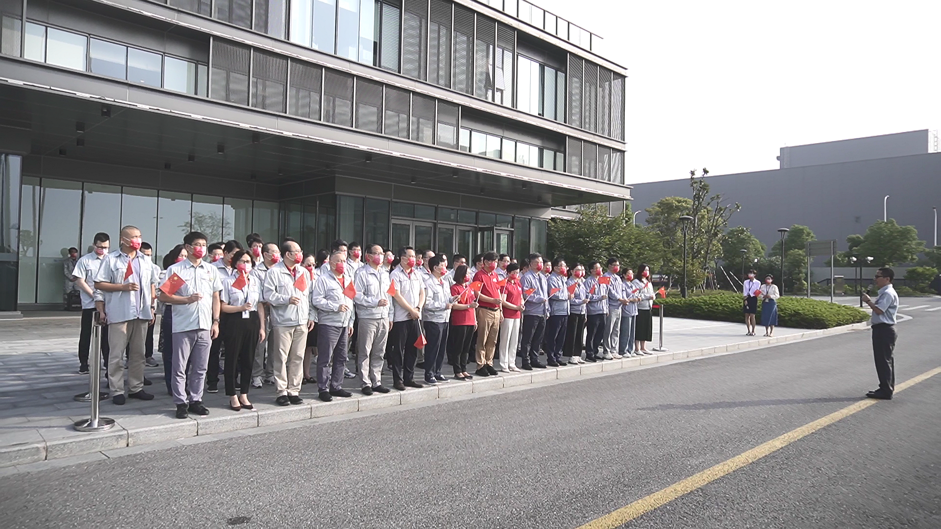 時維十月,序?qū)俳鹎铮皇⑹廊A誕,舉國同慶。10月1日,華虹集團(tuán)舉辦兩大制造平臺升國旗儀式、抗疫保產(chǎn)逆行半年座談會等慶祝活動,熱烈慶祝偉大的中華人民共和國成立73周年。集團(tuán)黨委書記、董事長張素心,集團(tuán)黨委副書記、總裁王靖出席活動并講話,兩大制造平臺相關(guān)領(lǐng)導(dǎo)、員工代表出席活動。