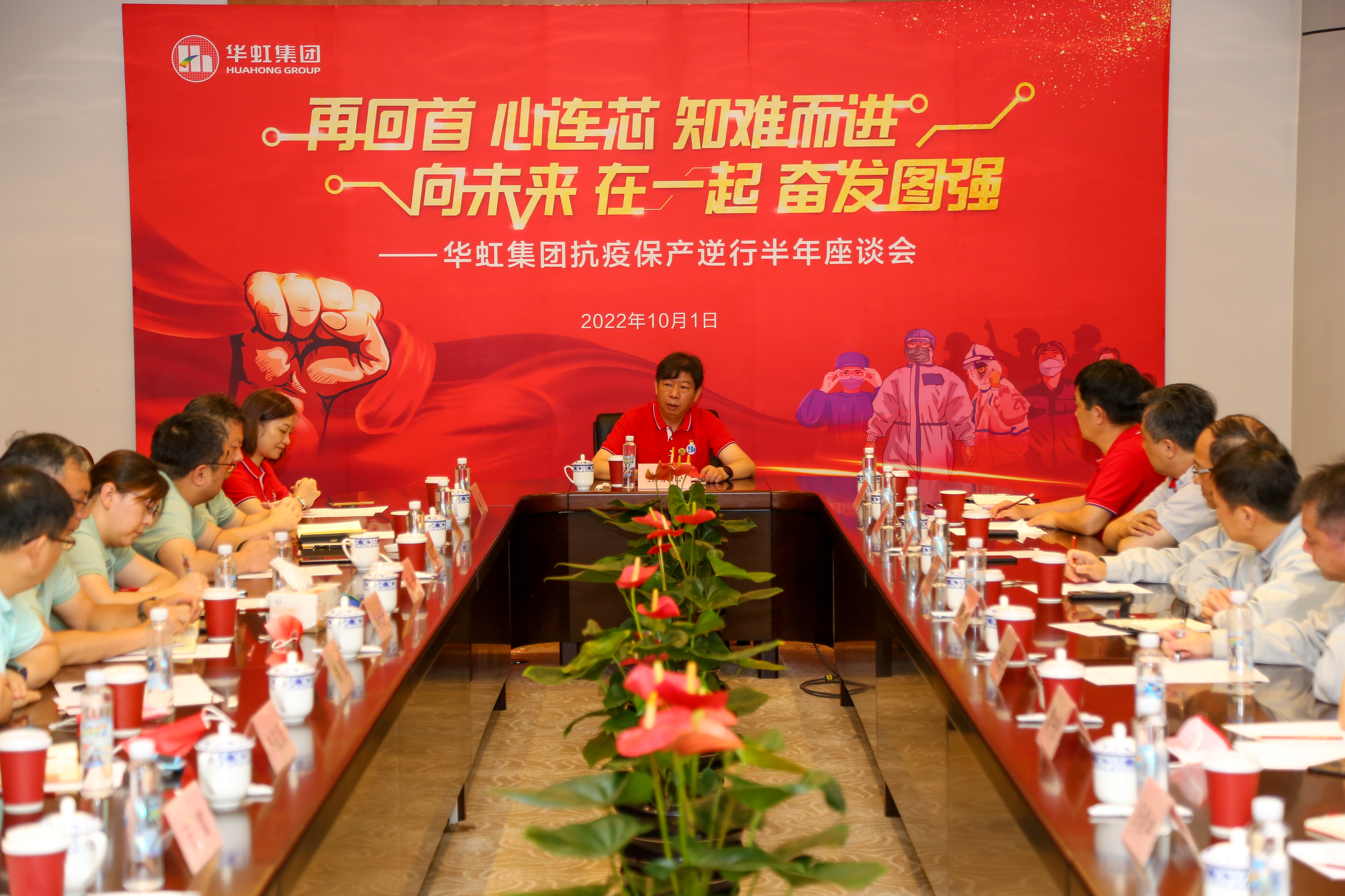 兩大制造平臺抗疫保產(chǎn)逆行半年座談會。上午,在華虹集團(tuán)發(fā)源地——華虹一廠召開“再回首,心連芯,知難而進(jìn);向未來,在一起,奮發(fā)圖強(qiáng)”兩大制造平臺抗疫保產(chǎn)逆行半年座談會。集團(tuán)領(lǐng)導(dǎo)及兩大制造平臺的黨政工團(tuán)負(fù)責(zé)人、工廠廠長齊聚一堂,深情回顧,凝聚共識,激情展望踔厲未來,進(jìn)行了充分交流。